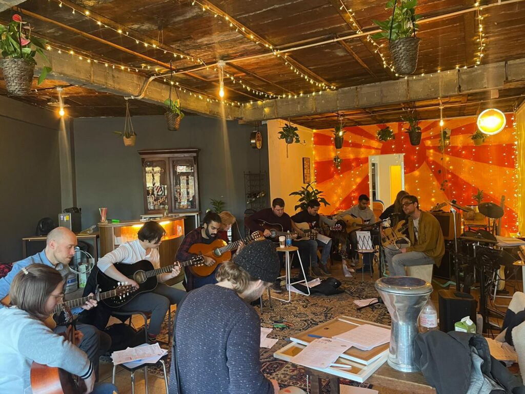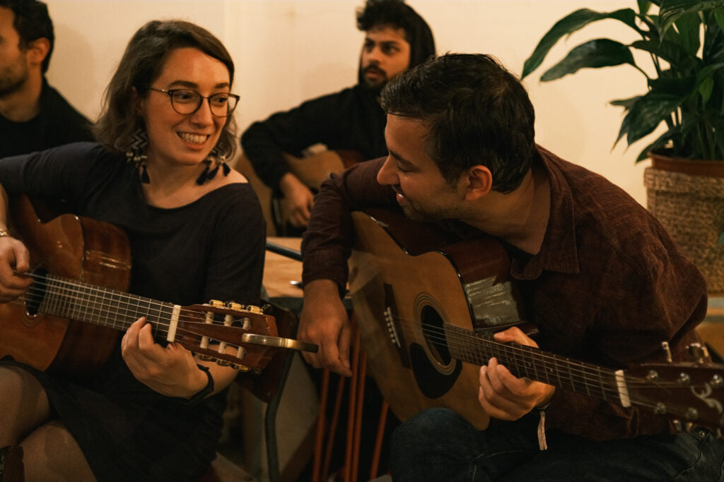 The Guitar Social’s Beginners Academy is the best guitar course in London. We’ve taught thousands of beginners across the city and taken them from nervous players to knowledgeable and confident performers in the space of eight weeks. The core component of our Academy is that it is a group course. That means you get to learn alongside other beginners, make friends, compare your newly developing callouses, and maybe even form the next big band together. The one the world has been waiting for.